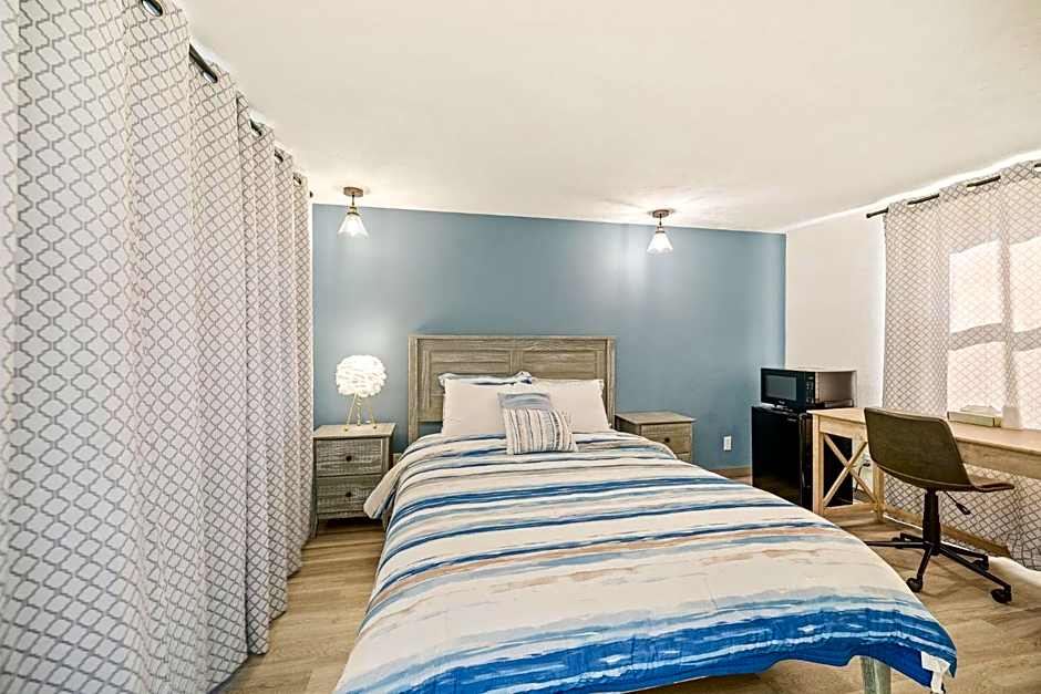 This spacious and thoughtfully designed room is ideal for solo travelers or couples, comfortably accommodating up to two guests. Enjoy a blend of style and functionality, with a range of modern amenities tailored to ensure your stay is as comfortable as possible. The room features a Mini Fridge, Microwave, and a Keurig Coffee Maker for your convenience, alongside Air Conditioning and Heating to keep you comfortable year-round. Unwind while watching your favorite shows on the 43-inch LED TV or stay connected with complimentary high-speed Wi-Fi. Whether you’re here to relax, catch up on work at the dedicated desk, or enjoy a peaceful night's rest, this room has everything you need for a pleasant and hassle-free stay.